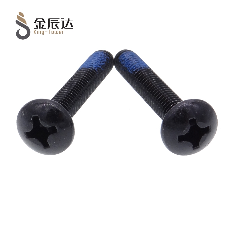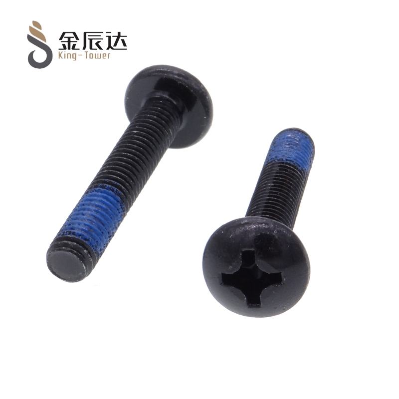 沉头十字点胶螺丝防滑抗震螺丝钉点蓝胶黑色涂胶防松螺钉M1.2-M6金辰达五金制品有限公司-—非标紧固件定制